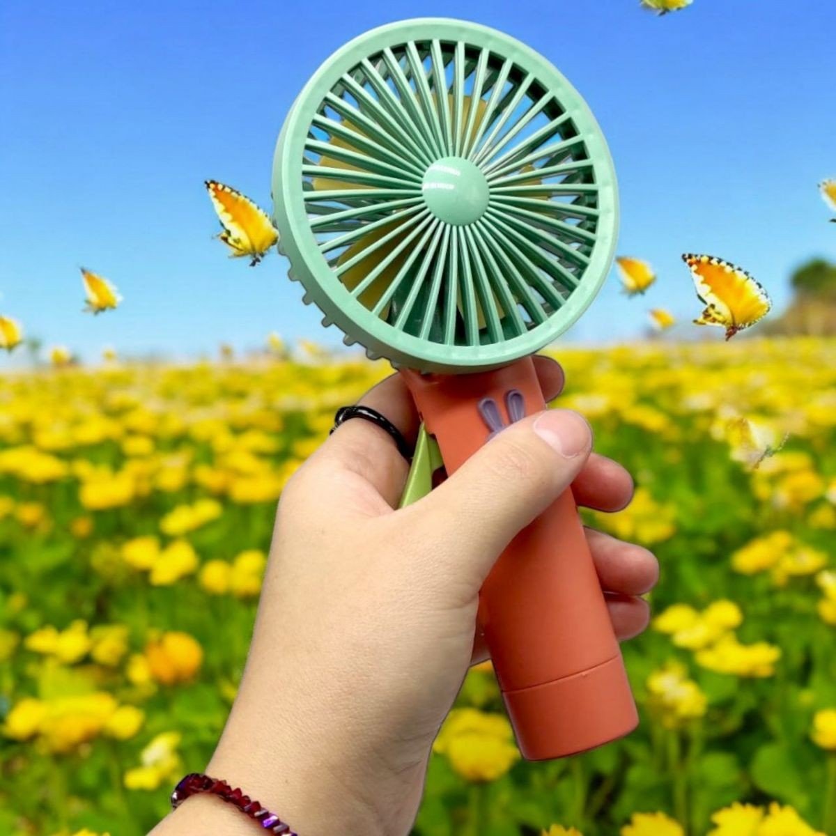 Компактний ручний вентилятор буде незамінним помічником у спеку. Яскравий дизайн підніме настрій власнику цієї речі. Вентилятор механічний (щоб пропейлер обертався, потрібно безперервно натискати на важіль на ручці". Розмір виробу - 19х9х4 см. Виконаний з міцного пластику. Різні види в асортименті.