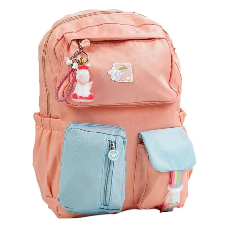 Стильний дитячий рюкзак, який підійде як для школи, так і для подорожей. Має безліч відділень та кишень як на зовнішній стороні, так і всередині. Широкі лямки регулюються під зростання дитини, що дозволяє рівномірно розподіляти навантаження на спину. На лицьовій стороні рюкзака є три зручні кишені, також оснащений двома бічними кишенями. Має просторе основне відділення та 7 різноманітних кишень усередині. Усередині рюкзака також можна знайти милий аксесуар - брелок з іграшкою-пищалкою у вигляді милого єдиноріжка.