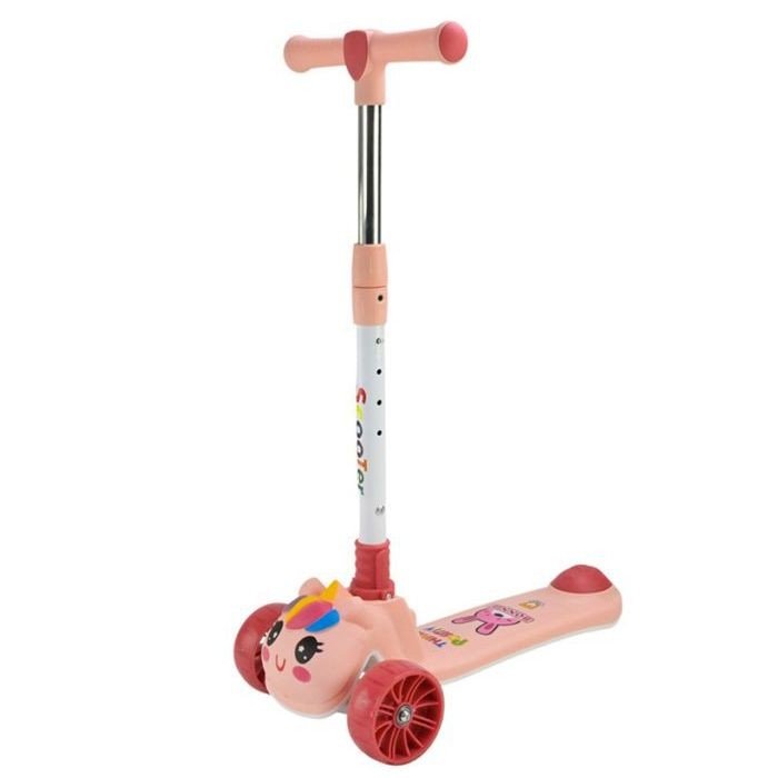 Опис Самокат дитячий 3-х коліс складний, колеса PU муз, батар., світло, звук (РОЖЕВИЙ)