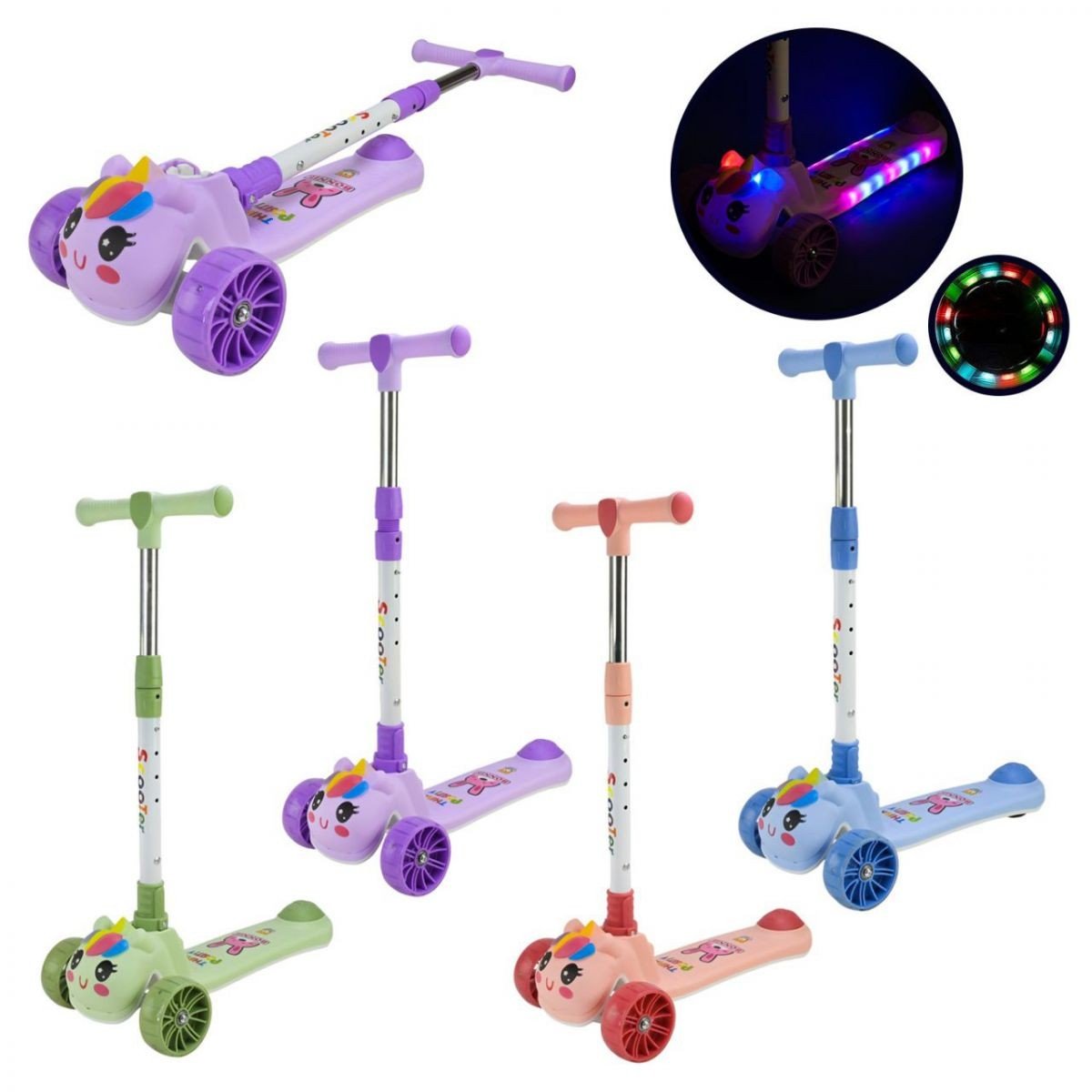 Самокат дитячий 3-х коліс складний, колеса PU муз, батар., світло, звук (РОЖЕВИЙ)