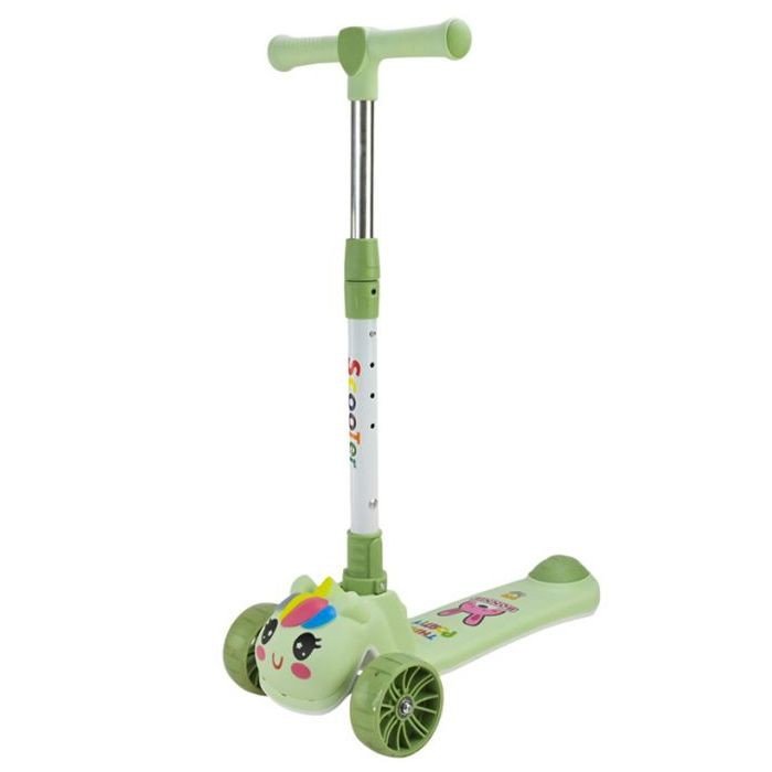 Опис Самокат дитячий 3-х коліс складний, колеса PU муз, батар., світло, звук (ЗЕЛЕНИЙ)