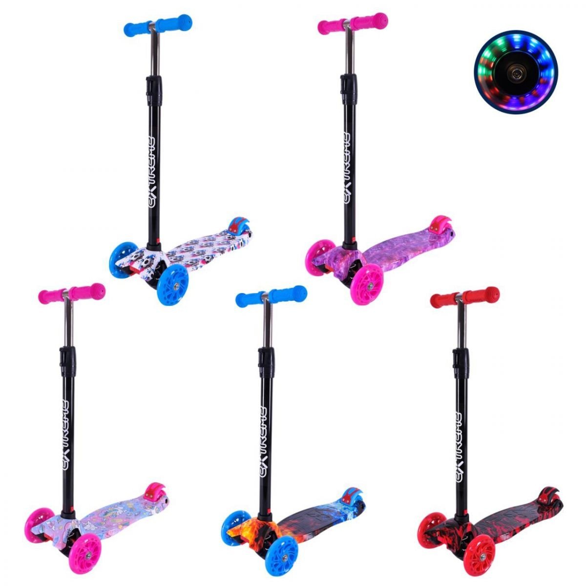 Опис Самокат дитячий 4-х коліс. MAXI, колеса PU світяться, пакет "Космос" (РОЖЕВИЙ)