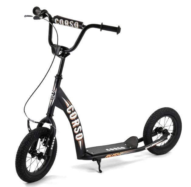 Опис Самокат двохколісний "Corso" колеса надувні 12``, ручне переднє гальмо