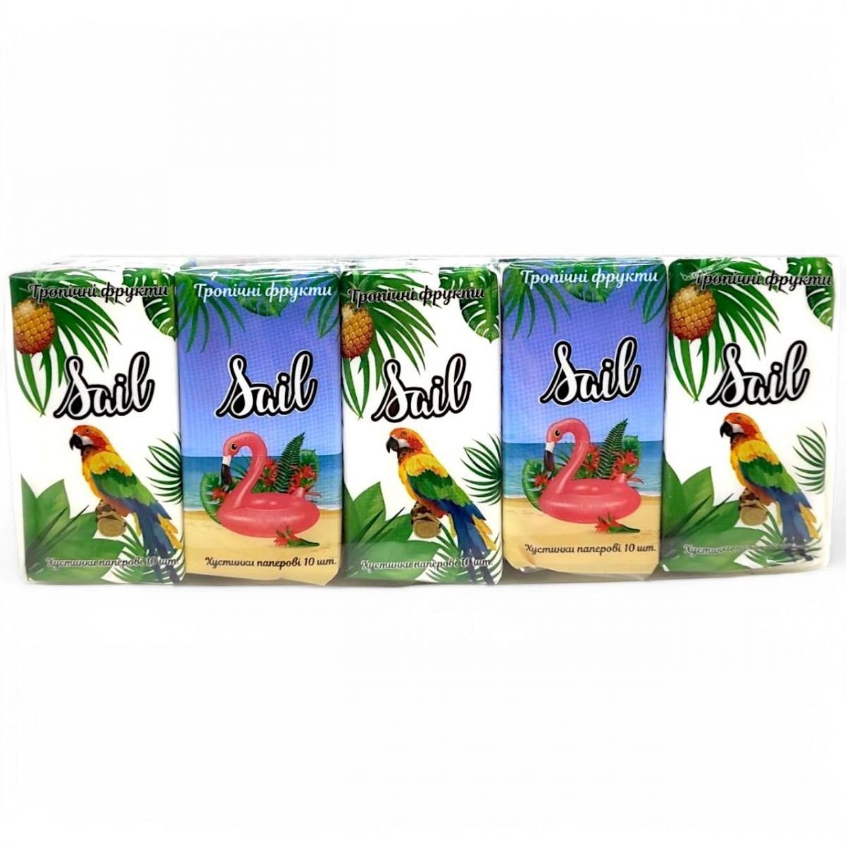 Серветки-хусточки паперові "Тропік", одношарові (набір: 10 упаковок; в кожній упаковці - 10 серветок