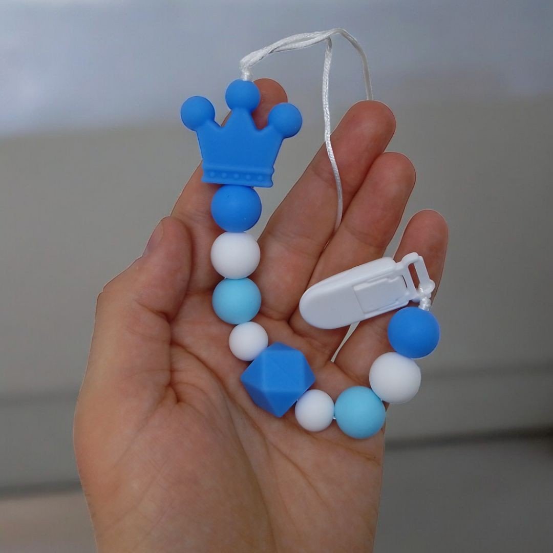 Опис Силіконова ланцюжок для пустушки "Корона", блакитна