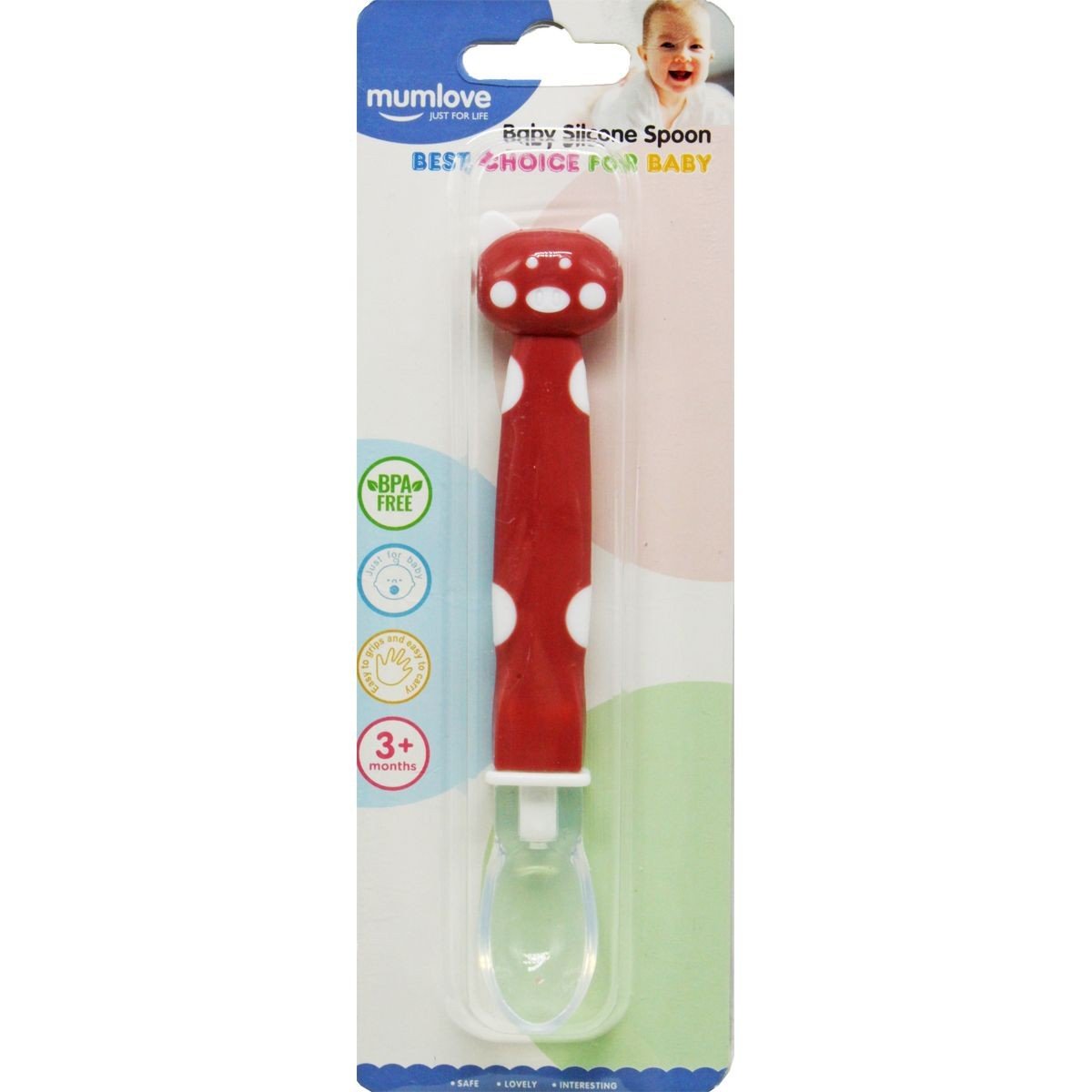 Силіконова ложечка для годування, виконана у симпатичному дизайні. Ложечка зручна у використанні. Ручка пластикова виконана таким чином, щоб її було легко тримати в руці. Довжина ложечки - 14 см. Не токсична та безпечна у використанні для найменших. Для дітей від 3 місяців.