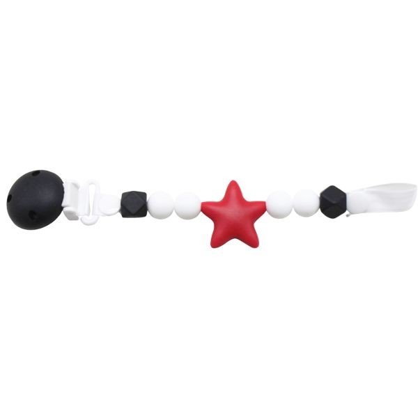 Милий силіконовий прорізувач для зубів у вигляді ланцюжка із застібкою. Допоможе зняти дискомфорт під час прорізування зубів. Сприяє концентрації уваги, розвиває дрібну моторику, тактильні відчуття, координацію рухів та колірне сприйняття. Довжина – 20 см. Для дітей від 4-х місяців.