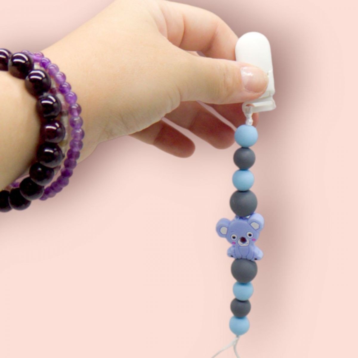 Силіконовий тримач “Коала”. Більше жодних загублений пустушок та прорізувачів. Тримач легкий, майже непомітний. Довжина тримача - 24 см. Кріпиться тримач до одягу/візочка/чого-завгодно за допомогою пластикової кліпси. Дитина не зможе відстебнути її самостійно. Силіконовий тримач зроблений повністю з харчового силікону - безпечного для дитини - його можна гризти.