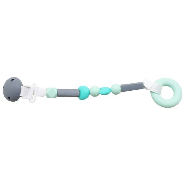 Милий силіконовий прорізувач для зубів у вигляді ланцюжка із застібкою. Допоможе зняти дискомфорт під час прорізування зубів. Сприяє концентрації уваги, розвиває дрібну моторику, тактильні відчуття, координацію рухів та колірне сприйняття. Довжина – 25 см. Для дітей від 4-х місяців.