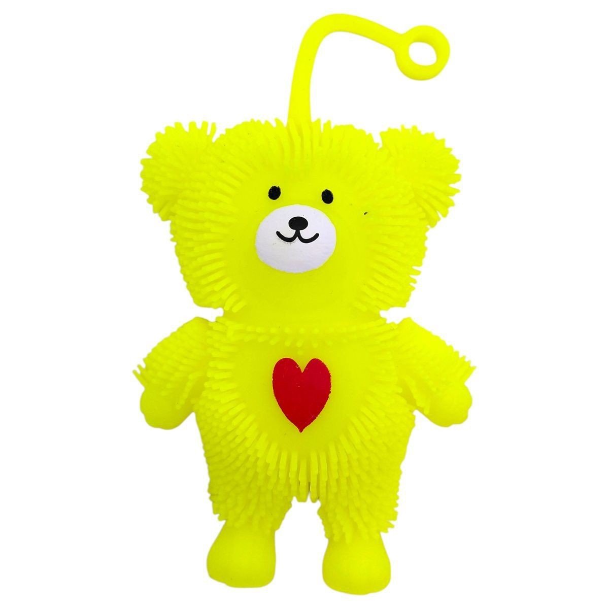 Кумедна світяшка у вигляді ведмедика. Іграшка порожня всередині й наповнена повітрям по типу надувної кулі. Всередині іграшки також є пластикова світяшка, що активується при ударі об поверхню. Виконано з якісних та безпечних матеріалів. Для дітей старше 3-х років. Якщо іграшка трошки здута, можна накачати її за допомогою звичайного медичного шприца з голкою (на іграшці є спеціальний отвір).