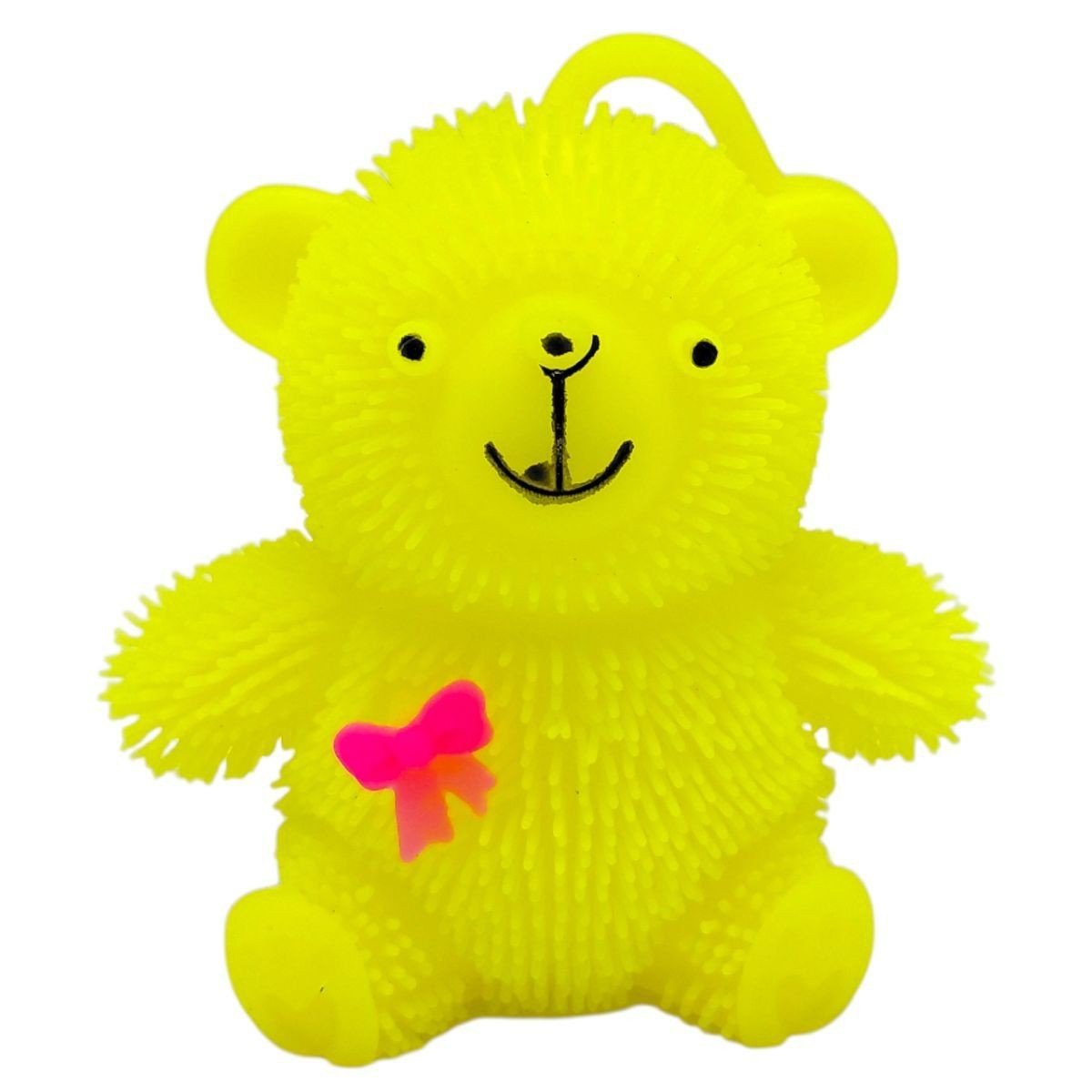 Кумедна світяшка у вигляді ведмедик. Іграшка порожня всередині й наповнена повітрям по типу надувної кулі. Всередині іграшки також є пластикова світяшка, що активується при ударі об поверхню. Виконано з якісних та безпечних матеріалів. Для дітей старше 3-х років. Якщо іграшка трошки здута, можна накачати її за допомогою звичайного медичного шприца з голкою (на іграшці є спеціальний отвір).