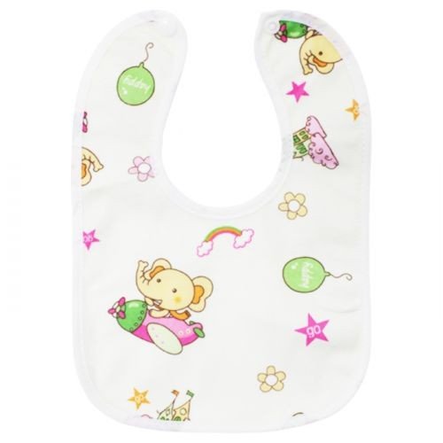 Дитячий тканинний нагрудник із забавним принтом. Застібається на кнопочки. Розмір слинявчика - 20х28 см. Виконаний з якісних і безпечних матеріалів.