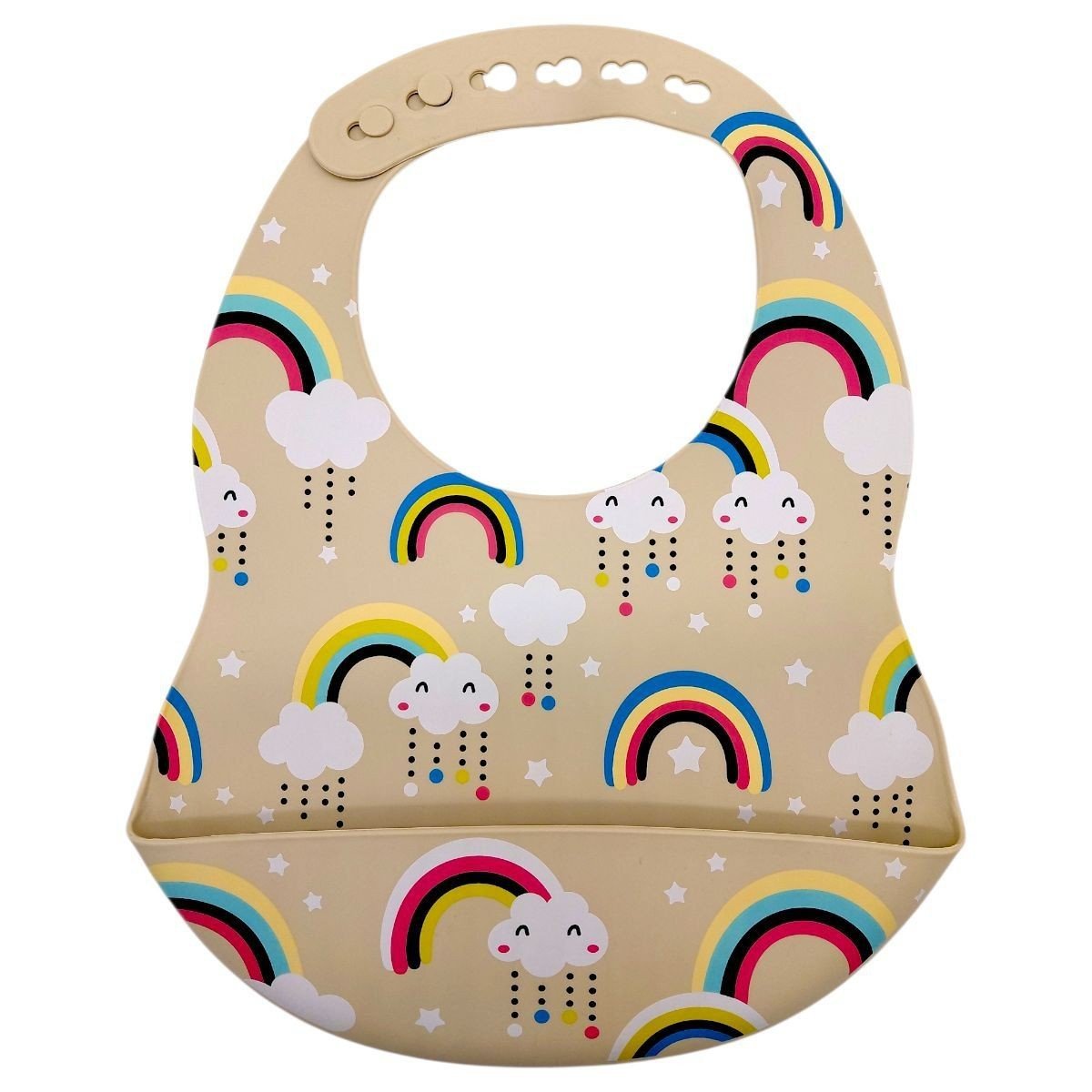 Нагрудник (слюнявчик) з кишенькою для їжі має особливу форму. Розмір коміра регулюється за допомогою ремінця. Силікон — це той матеріал, що не б’ється, не тріскається, не змінює колір. За слюнявчиком легко доглядати, достатньо просто помити під теплою водою з дитячим миючим, Можна дезінфікувати, ставити у посудомийну машину та мікрохвильовку.