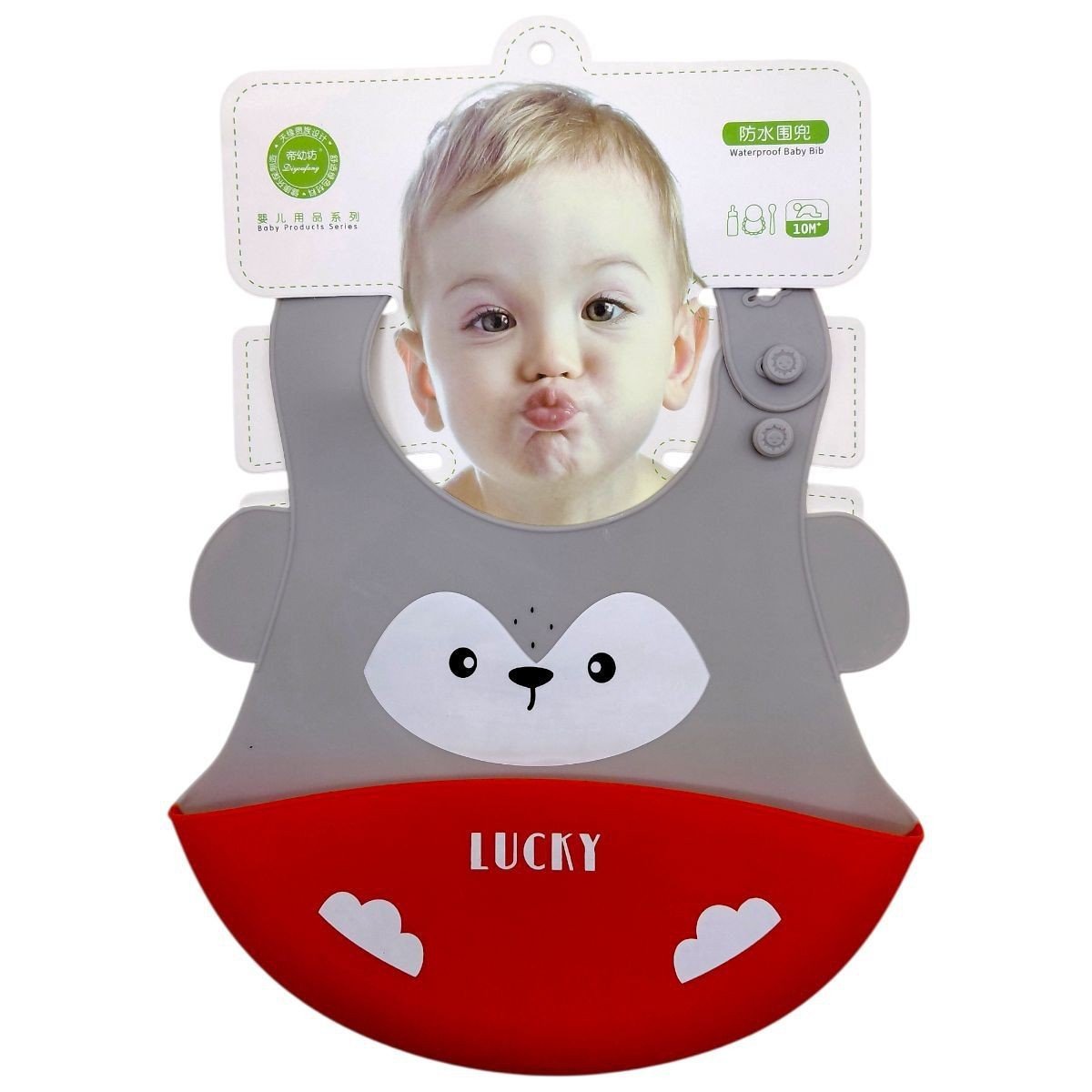 Бренд: Mega Zayka Упаковка: Пакет Колір: Сірий Вага з упаковкою: 89 г Габарити в упаковці: 2 x 22 x 30 см Габарити без упаковки: 2 x 22 x 22 см Країна виробник: Китай Матеріал: Силікон Комплектація: слинявчик