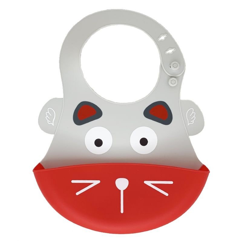 Нагрудник (слюнявчик) з кишенькою для їжі має особливу форму. Розмір коміра регулюється за допомогою ремінця. Виготовлений з якісних і безпечних матеріалів.