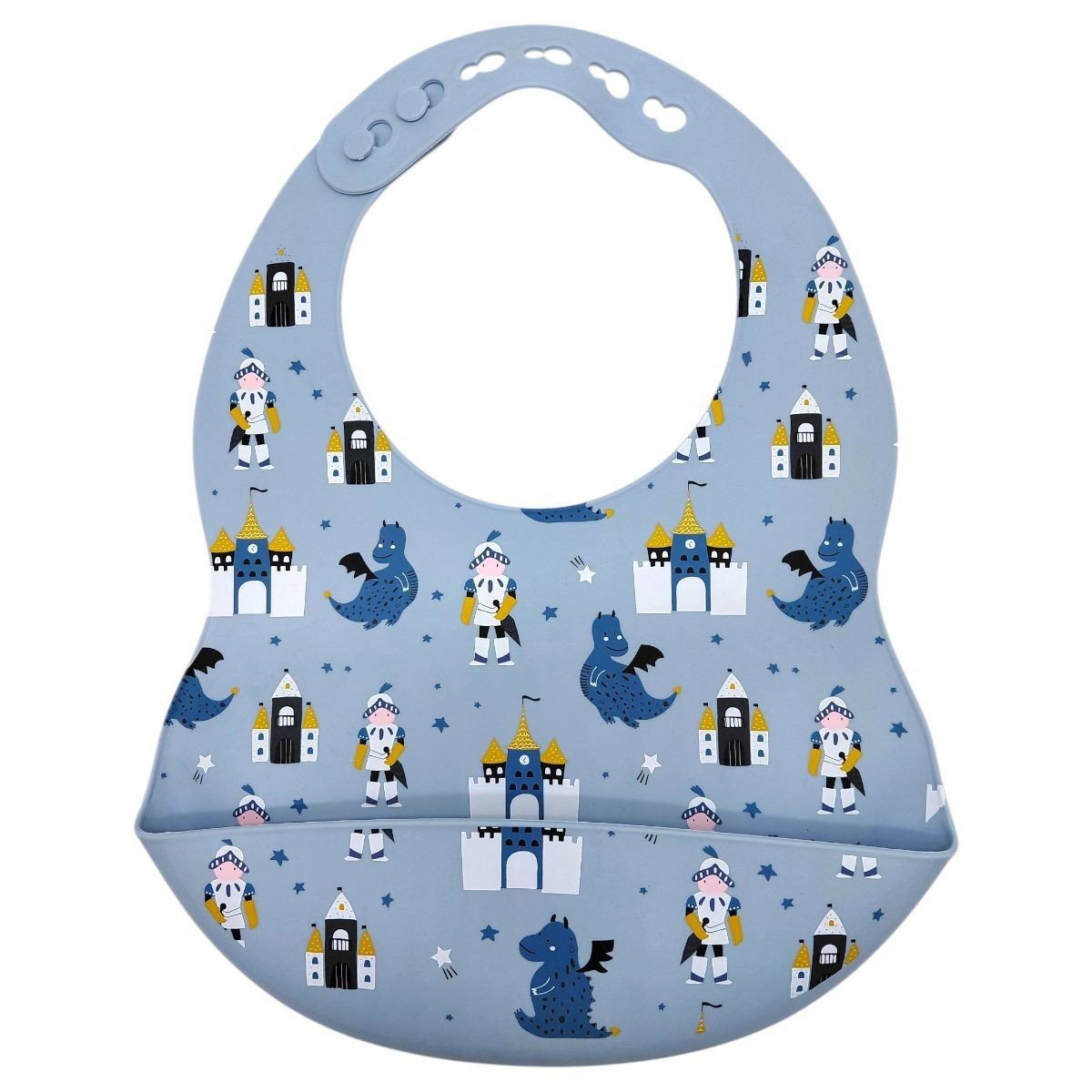 Нагрудник (слюнявчик) з кишенькою для їжі має особливу форму. Розмір коміра регулюється за допомогою ремінця. Силікон — це той матеріал, що не б’ється, не тріскається, не змінює колір. За слюнявчиком легко доглядати, достатньо просто помити під теплою водою з дитячим миючим, Можна дезінфікувати, ставити у посудомийну машину та мікрохвильовку.