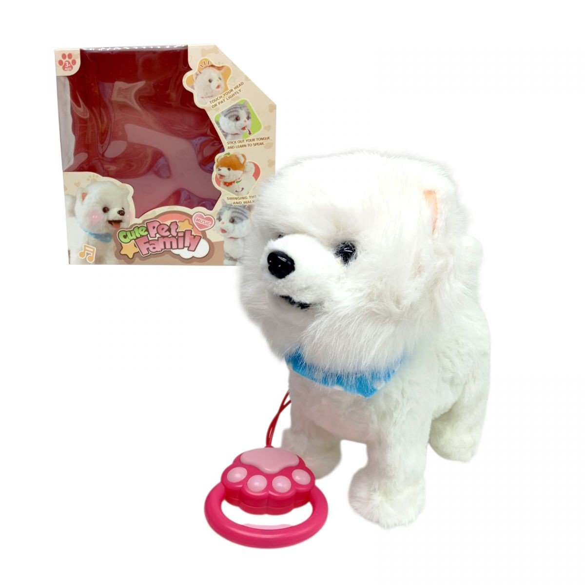 Інтерактивна іграшка у вигляді песика. Іграшка на дистанційному керуванні, яке представлене у вигляді повідця. Якщо погладити цуцика він почне видавати милі звуки характерні песикам та висовувати язика. При натисканні на ручку повідця іграшка почне співати різноманітні пісні, та сам цуцик почне підтанцьовувати у ритм музиці. В комплекті також присутні різні аксесуари для створення ігрових сюжетів. Завдяки компактному розміру іграшку зручно брати з собою у подорож або на прогулянку. Розвиває емоційну чутливість, уяву, та дрібну моторику.