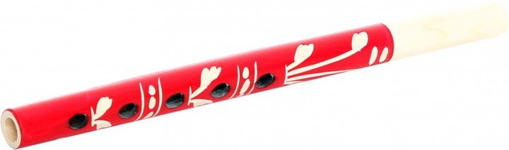 Яскрава сопілка з цікавою різьбою. Виготовлена з дерева (сосна, бук). Має 5 нот. Розмір дудочки: 25 см.