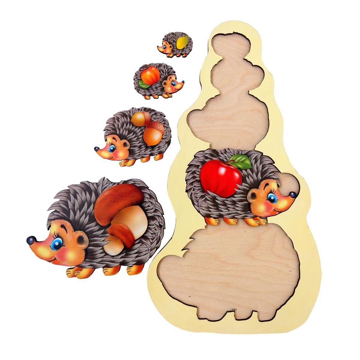 Сортер "Більше-менше". З цим набором можна наочно пояснити дитині, що таке розмір та поняття "великий, середній, маленький". Можна вивчати разом рахунок від 1 до 5. Так само, іграшка розвиватиме дрібну моторику, пам'ять та увагу.