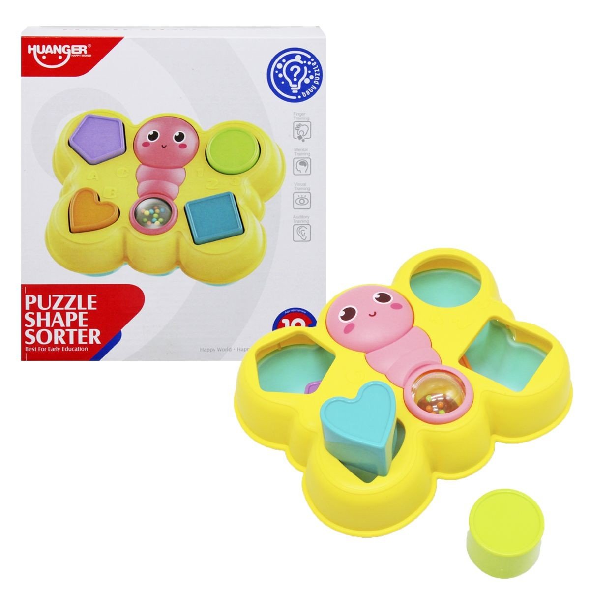 Оригінальна іграшка-сортер для малюків від 18 місяців. Іграшка виконана у вигляді контейнера з отворами різної форми на кришці. Усередині можна знайти фігурки, які дитина повинна буде вставити у відповідні їм отвори. Також на кришці є невелике брязкальце у вигляді прозорої сфери, в якій знаходяться маленькі різнокольорові кульки. Набір виконаний із міцного пластику, якісний та безпечний для дітей.