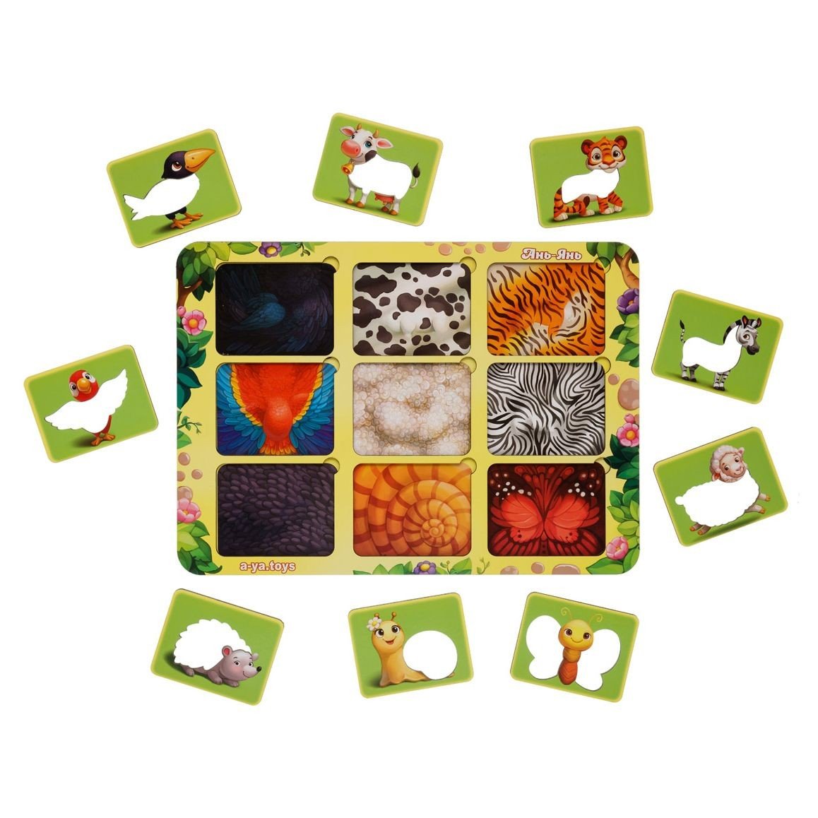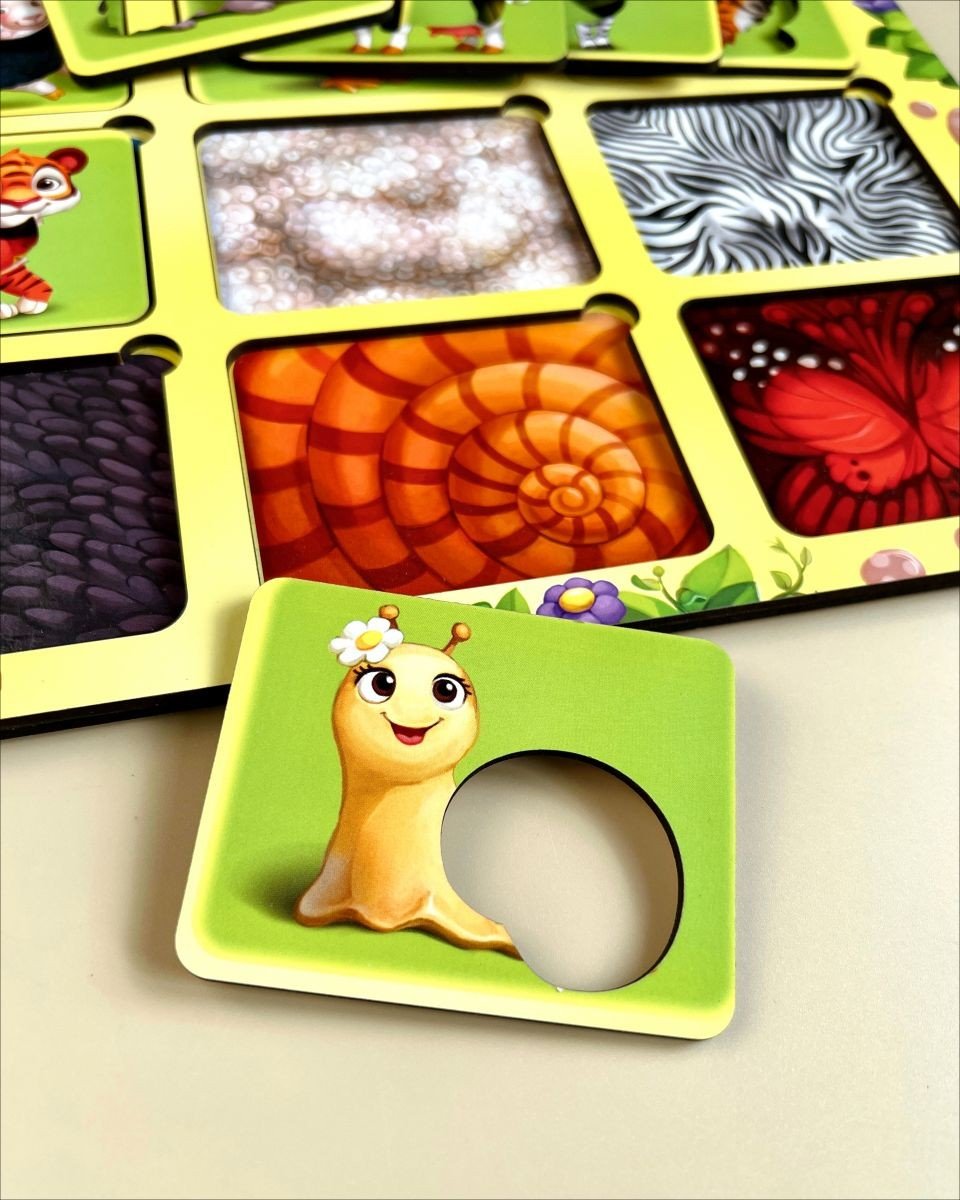 Дерев'яний сортер "Де чий візерунок?" познайомить малюка з різними тваринами. Нижній шар прикрашений візерунками у тематиці різних тварин. Головне завдання - правильно співвіднести візерунок та картинку з твариною. Допоможе у розвитку колірного сприйняття, логіки, посидючості, уважності. Розмір рамки 23х32 см.