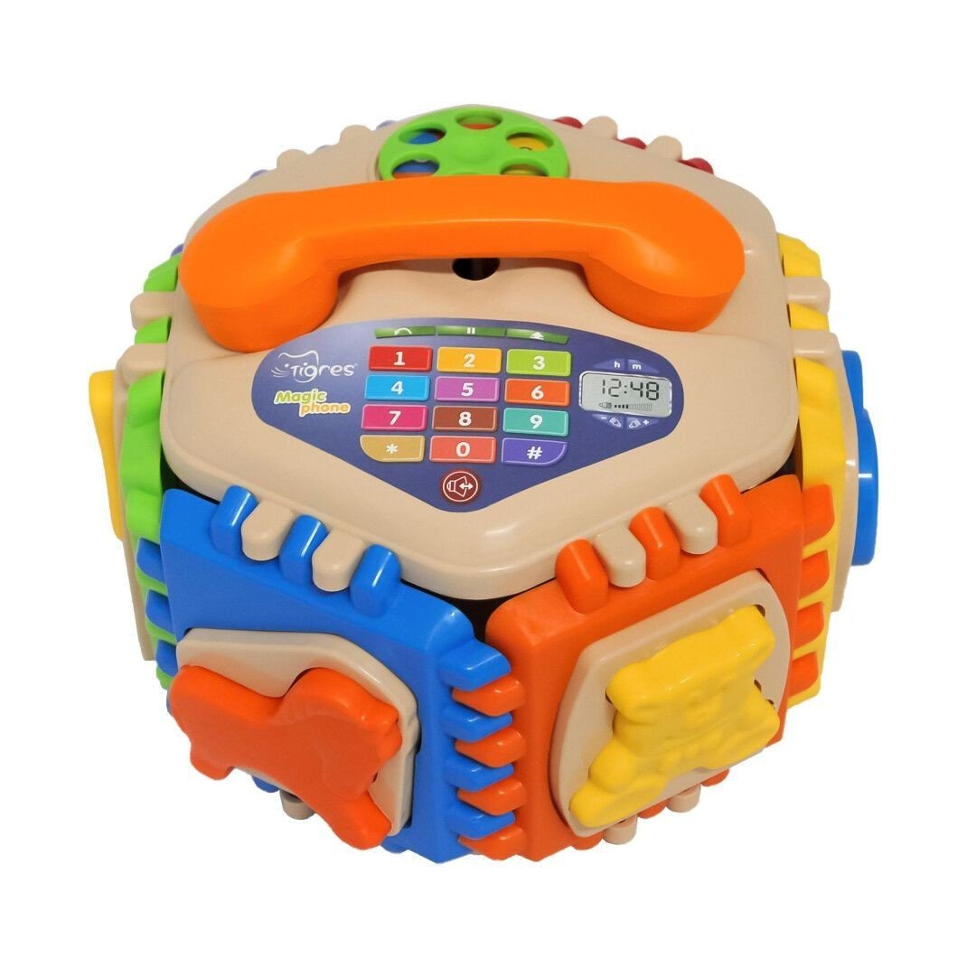 Іграшка - сортер у формі телефону буде цікавим подарунком дитині. У наборі є сортер, і фігурки, які потрібно помістити в відповідну за формою осередок. Розмір сортера - 21 х 16 х 21 см. Виконаний з якісного пластику. Для дітей від трьох років.