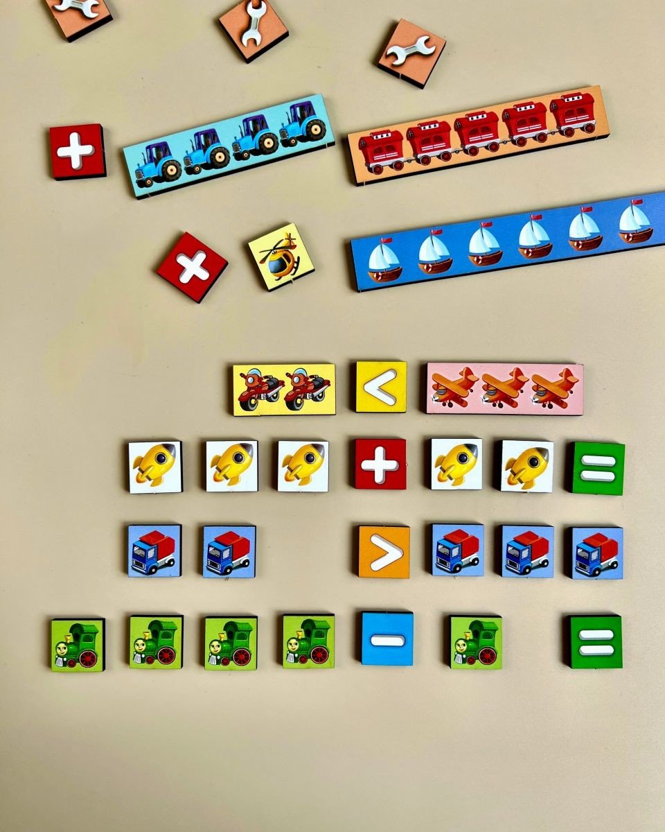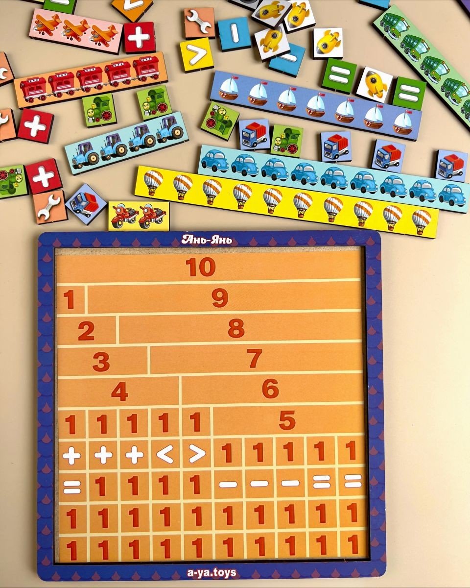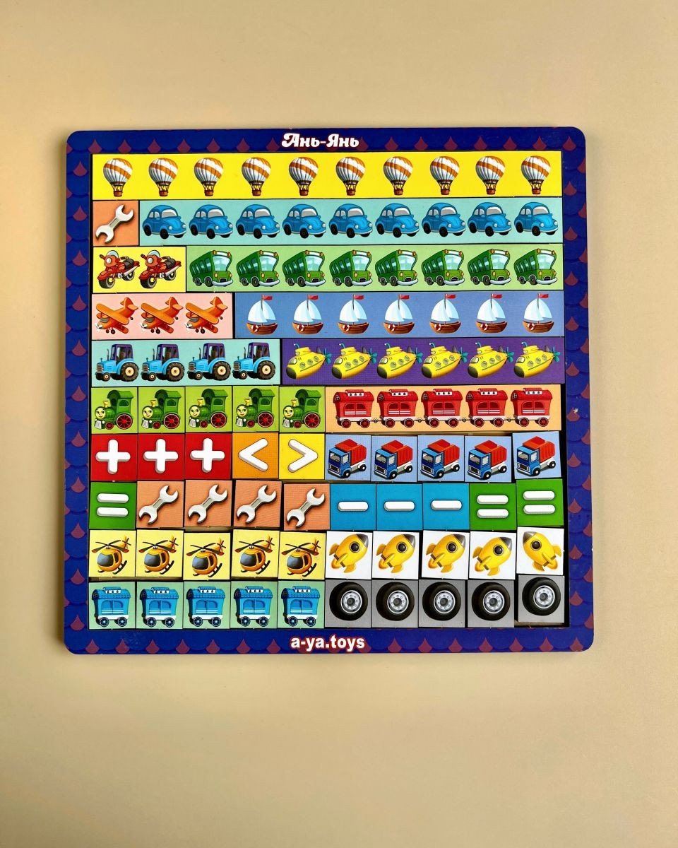 Сортер "Математичні сходинки" - це набір лічильного матеріалу: лінійки з картинками й математичними символами. Ця гра допоможе дитині вчити цифри, співвідносити цифру і кількість, зворотний рахунок. Поліпшить дрібну моторику, увагу і пам'ять.