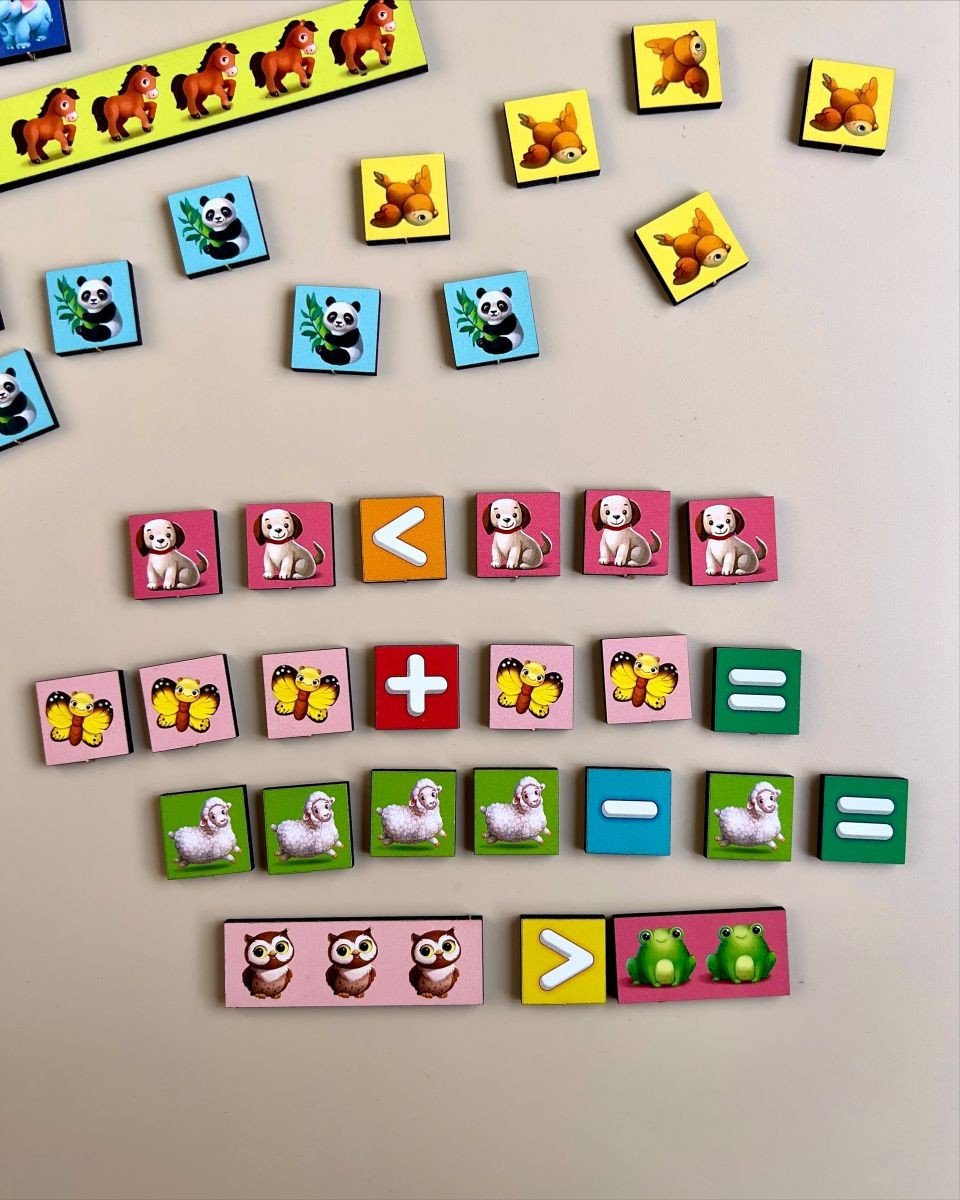 Сортер "Математичні сходинки" - це набір лічильного матеріалу: лінійки з картинками й математичними символами. Ця гра допоможе дитині вчити цифри, співвідносити цифру і кількість, зворотний рахунок. Поліпшить дрібну моторику, увагу і пам'ять.