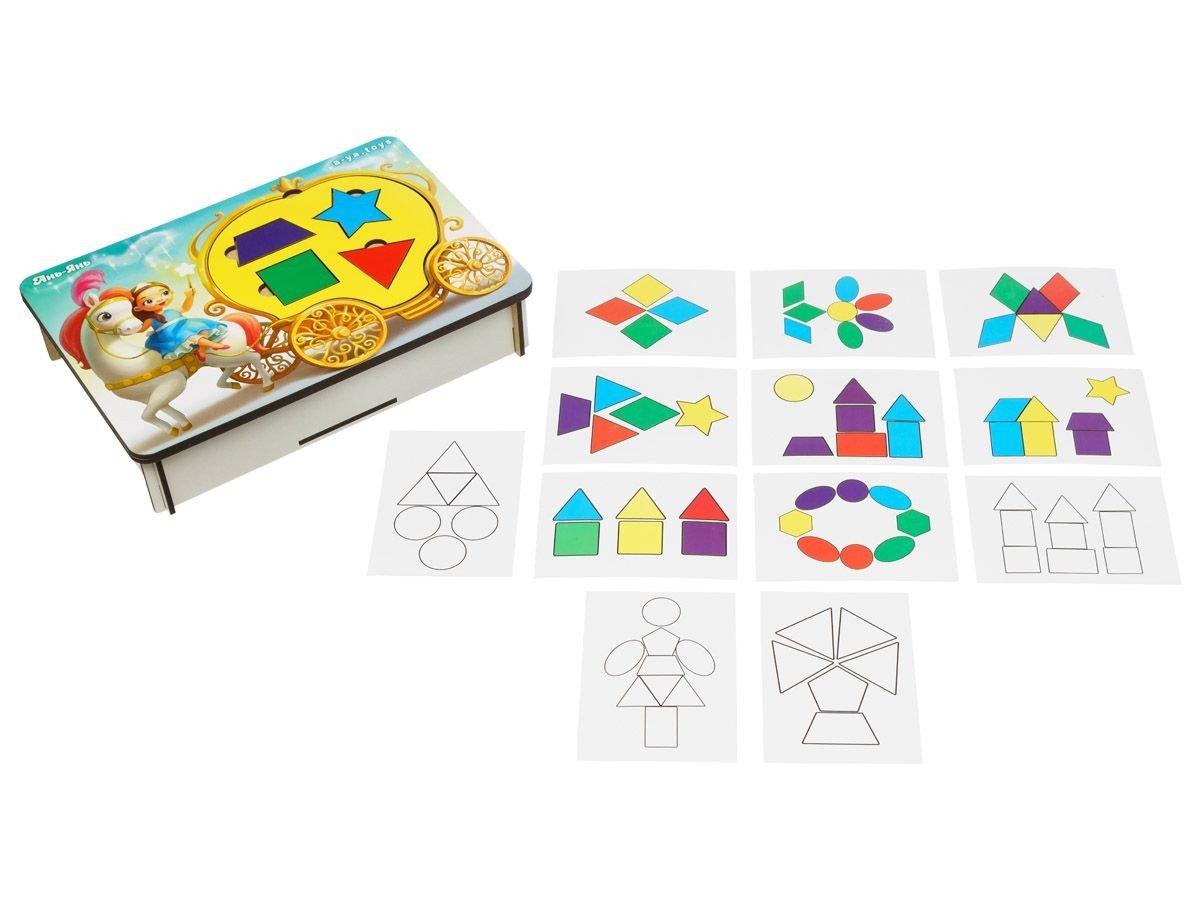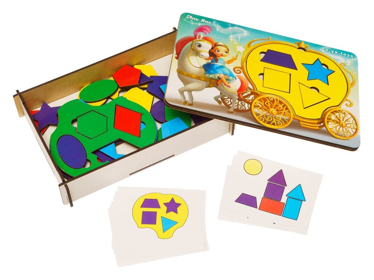 Розвиваюча гра у вигляді карети з віконцями з різних фігур. У комплекті є: 26 карток з візуальними завданнями. Потрібно поставити фігури в осередку в кареті. Гра - відмінний помічник у вивченні фігур, рахунку і кольорів.