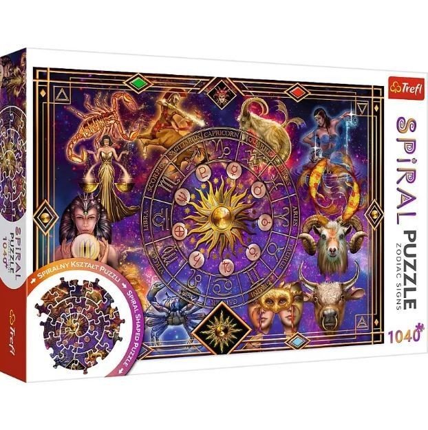 Пазли "Знаки зодіаку" відрізняються своїм оригінальним спіралеподібним візерунком, який утворюється, якщо скласти картинку. Красиві пазли на 1040 деталей із зображенням в астрологічній тематиці. Розмір картинки: 68.3х48 см. Розвивають логічне мислення, дрібну моторику рук, усидливість. Для дітей віком від 3-х років.