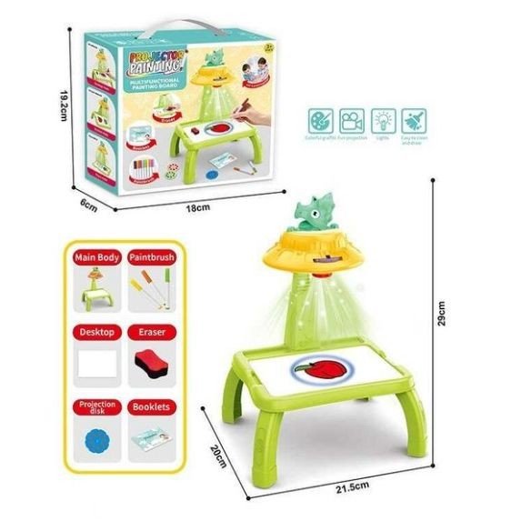 Цей проєктор — справжній помічник для маленьких художників! Завдяки проєкції яскравих малюнків на столі, дитина може розфарбовувати їх фломастерами, розвиваючи свою уяву та художні здібності. Фломастери, що йдуть у комплекті, дозволяють додати яскравих кольорів до кожного зображення, а сам процес малювання сприяє розвитку дрібної моторики та координації рухів. Іграшка не лише дарує радість від творчості, але й стимулює пізнавальний розвиток малюка. Столик працює від 3 батарейок типу “ААА” (в комплект не входять). Допомагає розвивати дрібну моторику та творче мислення. Виготовлений з безпечного та міцного пластику. Ідеально підходить для малюків від 3 років.