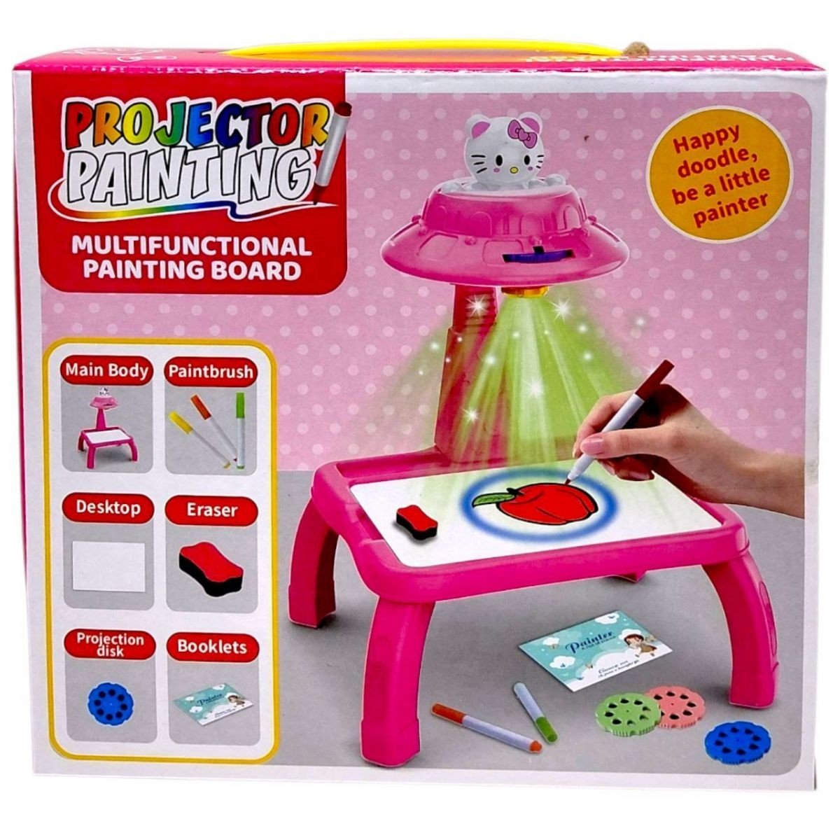 Опис Столик з проєктором на батарейках, герой, підсвітка, диски, фломастери, в коробці