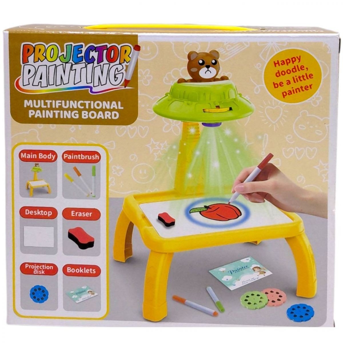 Столик з проєктором, на батарейках, “Ведмедик”, підсвітка, диски, фломастери, в коробці