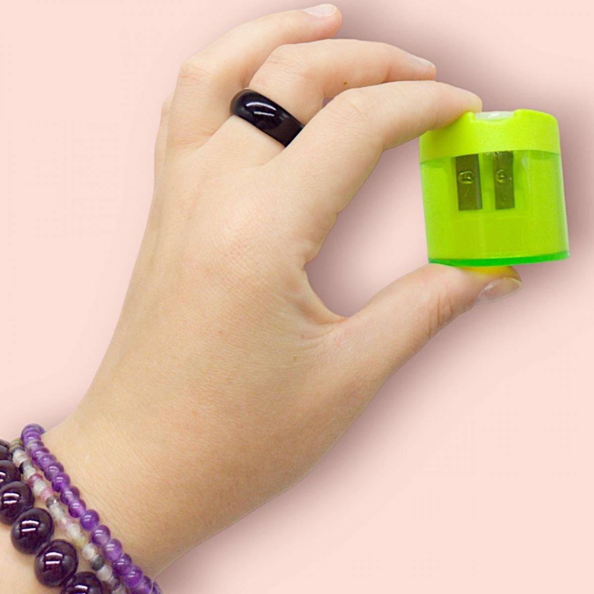 Стругачка з прозорим контейнером - багатофункціональний аксесуар. Контейнер легко відʼєднується від точилки. У стругачки є 2 отвори для олівців (закривається кришкою). Виріб легкий та компактний, добре поміщається в пенал. Розмір - 4,5х4х4,5 см. Виконано з якісного та міцного пластику. Різні види в асортименті.