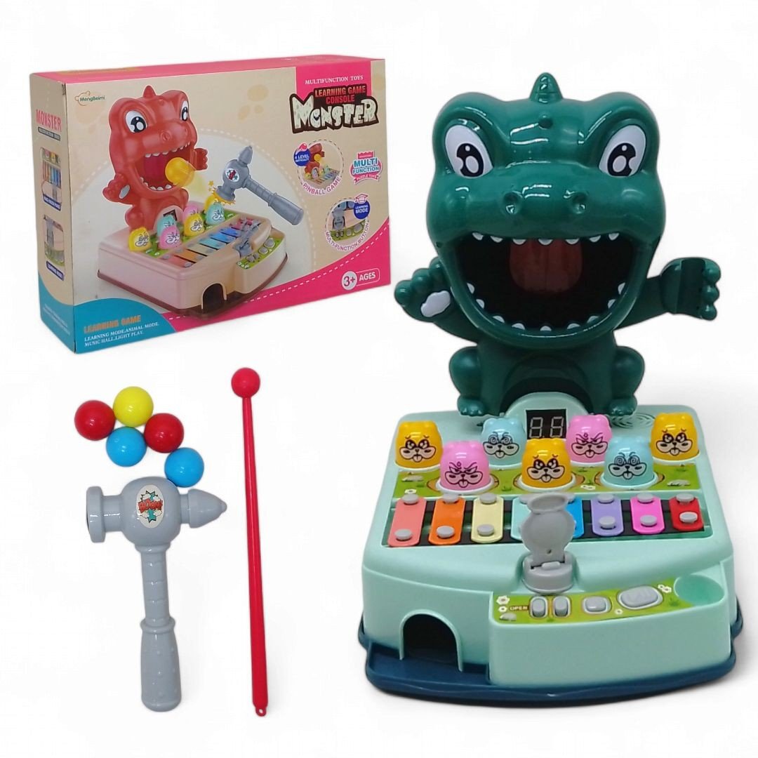 Інтерактивна гра 3 в 1— це справжній вибух емоцій і активного дозвілля для дітей! Гравці зможуть перевірити свої навички та координацію, виконуючи захопливі завдання: катапультування кульок до пащі великого дракона, боротьбу з маленькими кротиками та гру на ксилофоні. Все це супроводжується веселою музикою та яскравим підсвічуванням.