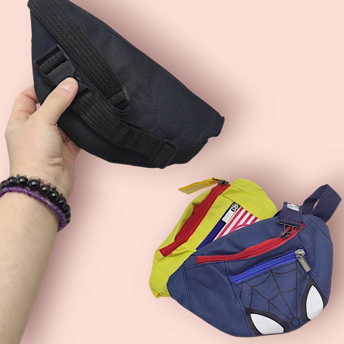 Дитяча сумочка-бананка має регульований ремінець, який легко підлаштовується під будь-який вік і розмір. Сумочка закривається на блискавку, забезпечуючи безпечне зберігання важливих дрібниць. Яскравий та веселий принт робить цю сумочку не лише зручною, а й стильною. 2 кармани.