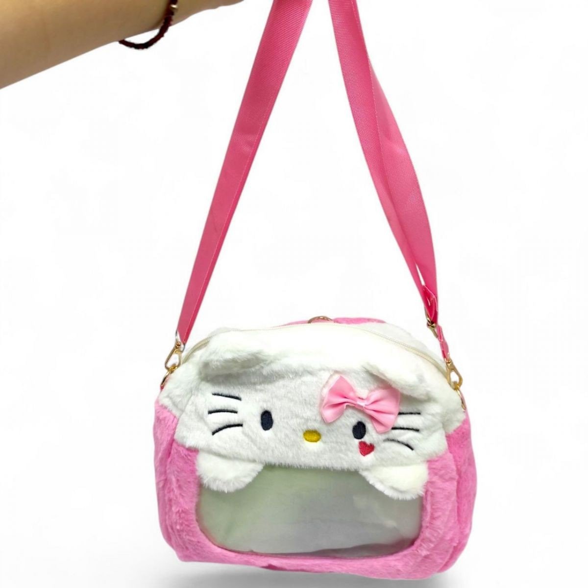 Це стильна та зручна сумочка з привабливим дизайном. Зовнішня частина виготовлена з мʼякого плюшевого матеріалу. Ремінці розроблені для універсального носіння, що дозволяє носити сумку на спині. Крім того, прозоре пластикове віконце надає можливість прикрашати сумочку в унікальному виді.