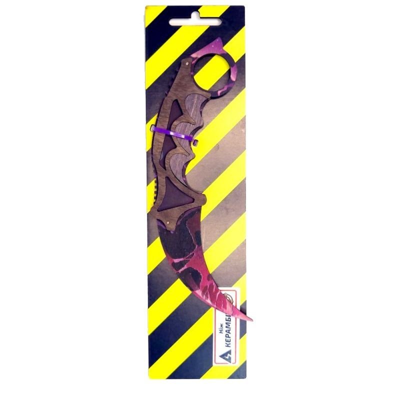 Ніж сувенірний – керамбіт . Матеріал: фанера. Довжина ножа – 20 см, ширина ручки – 3 см. Чудовий подарунок-сувенір. Ніж дерев'яний, якісний та міцний. Чи не заточений, гострі частини закруглені та зашліфовані, повністю безпечний. Для дітей віком від 6 років.