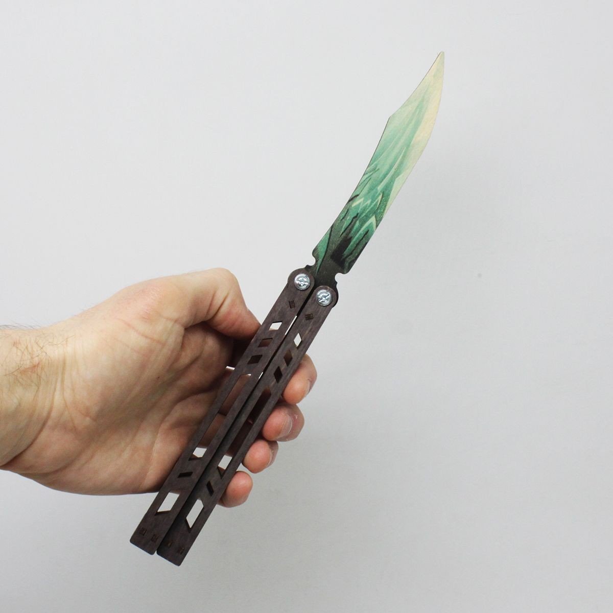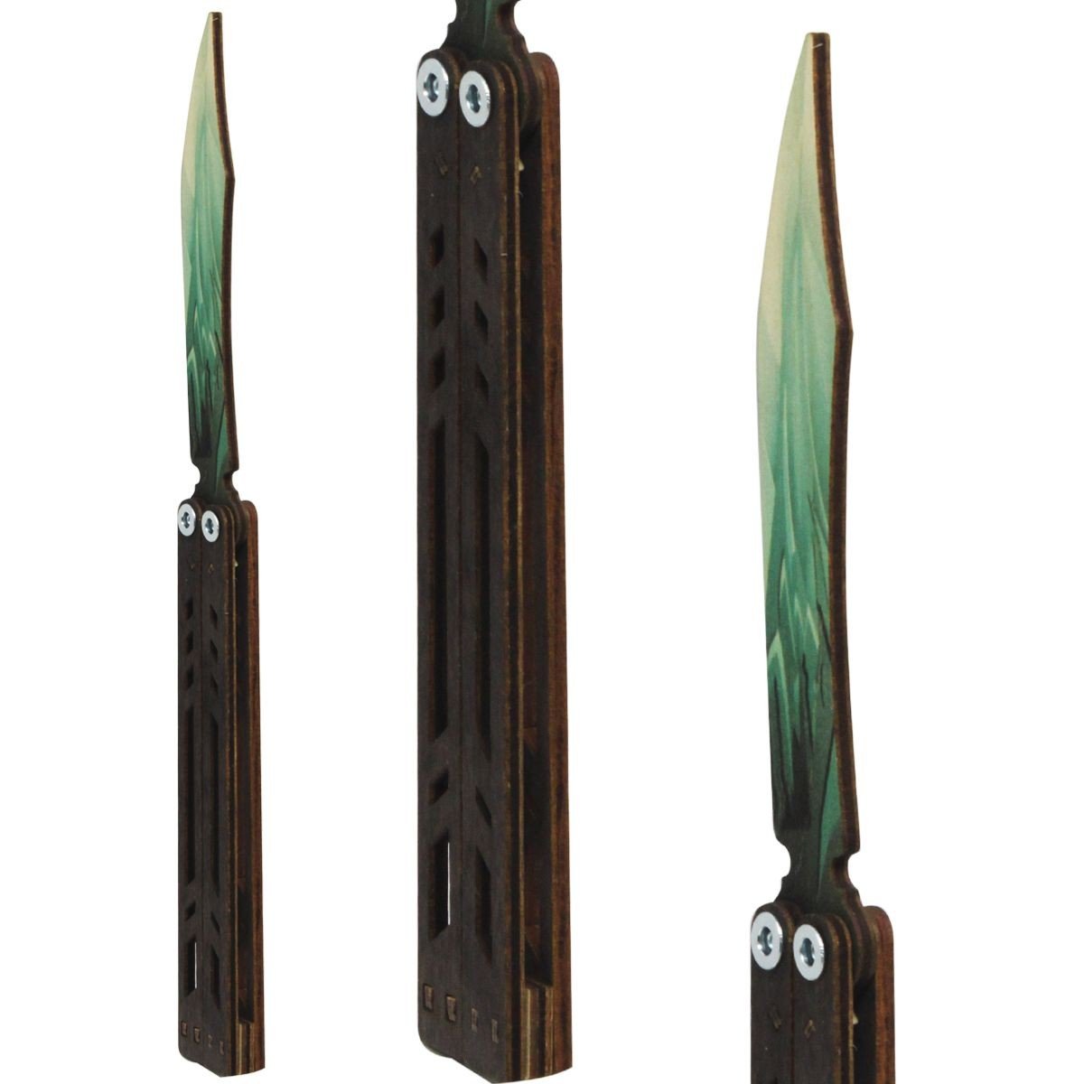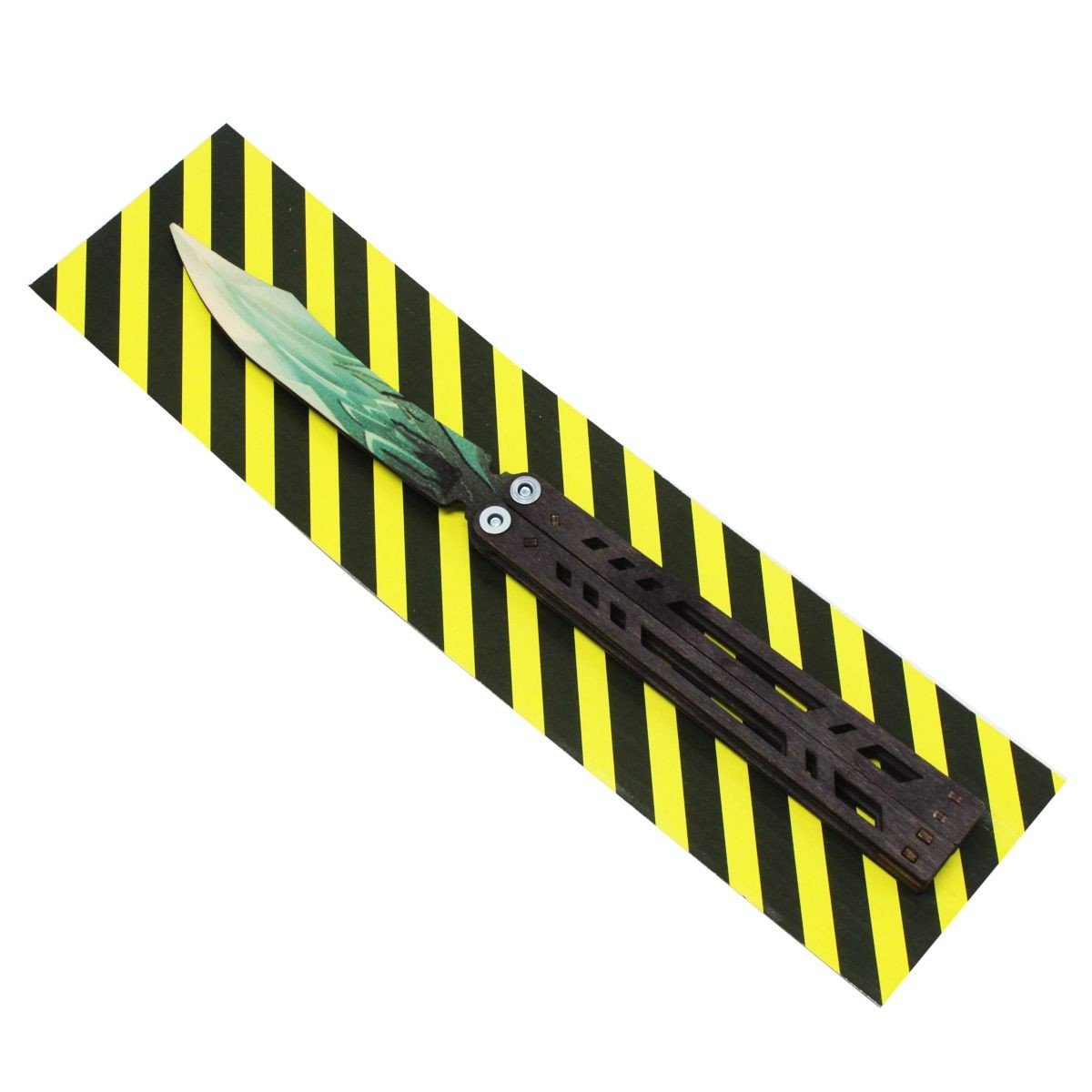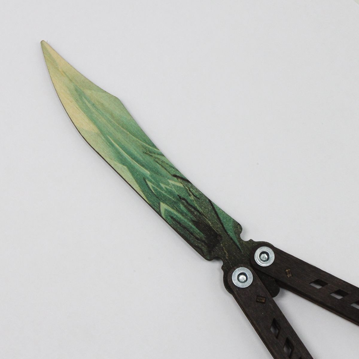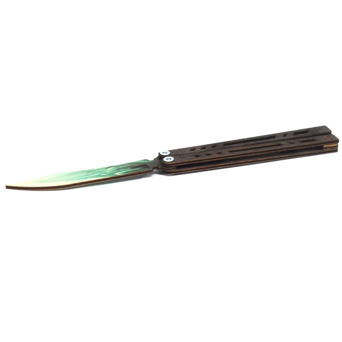 Ніж сувенірний – метелик. Матеріал: фанера. Довжина ножа – 26.5 см, ширина ручки – 2,5 см. Чудовий подарунок-сувенір. Ніж дерев'яний, якісний та міцний. Чи не заточений, гострі частини закруглені та зашліфовані, повністю безпечний. Для дітей віком від 6 років.
