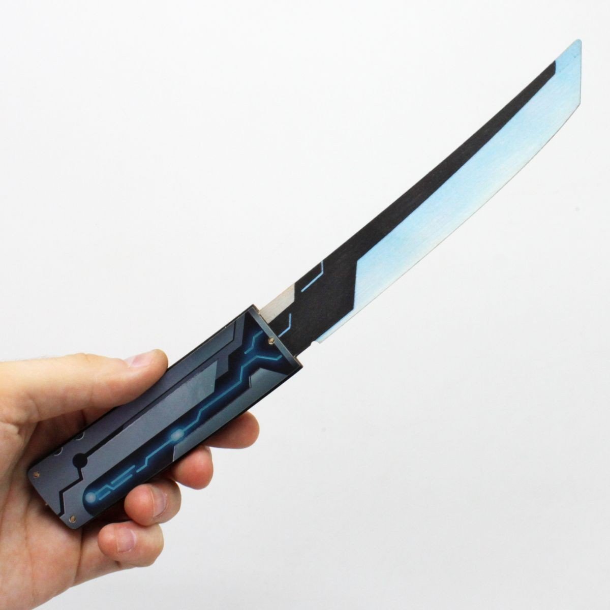Ніж сувенірний TANTO ТРАНЗИСТОР. Матеріал: фанера. Довжина ножа – 28 см, ширина ручки – 3 см. Чудовий подарунок-сувенір. Ніж деревʼяний, якісний та міцний. Не заточений, гострі частини закруглені та зашліфовані, повністю безпечний. Лезо вкрите футуристичними візерунками. Для дітей віком від 6 років.
