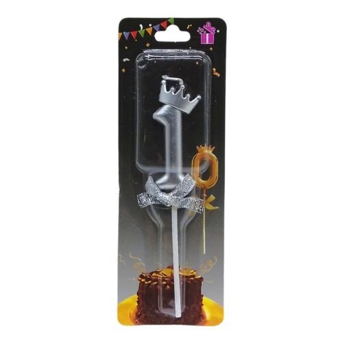 Опис Свічка для торта "Цифра 1 з короною" (срібло)