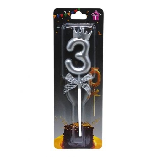 Опис Свічка для торта "Цифра 3 з короною" (срібло)