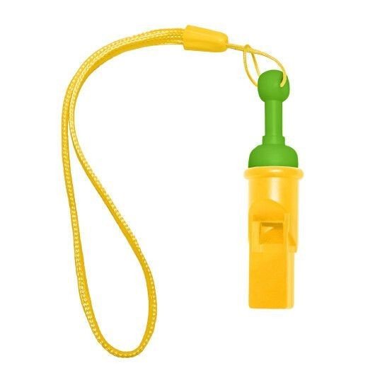 Яскравий спортивний свисток на ремінці. Виконаний із міцного пластику на мотузку. Розмір свистка 7х2х2 см. Довжина ремінця: 16 см. Різні кольори в асортименті.