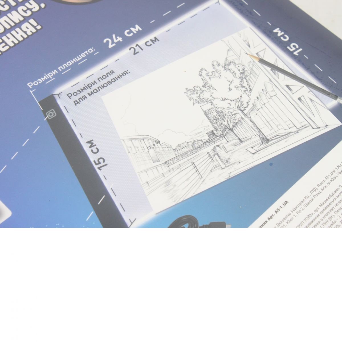 Світловий планшет призначений для копіювання малюнків. З його допомогою можна прослідкувати історію зміни малюнка, фігури в процесі малювання. Фігури чи малюнок можна скопіювати на лист паперу. Планшет може використовуватись аніматорами для зображення обʼєктів у русі. Щоб користуватись планшетом, потрібно розмістити його на рівній робочій поверхні та підключити до джерела живлення (microUSB кабель є в комплекті). Утримуючи кнопку живлення, можна відрегулювати підходящу яскравість підсвітки (планшет має 3 рівні яскравості). Розмістіть малюнок на робочій поверхні, зверху розмістіть чистий лист паперу та почніть малювати.
