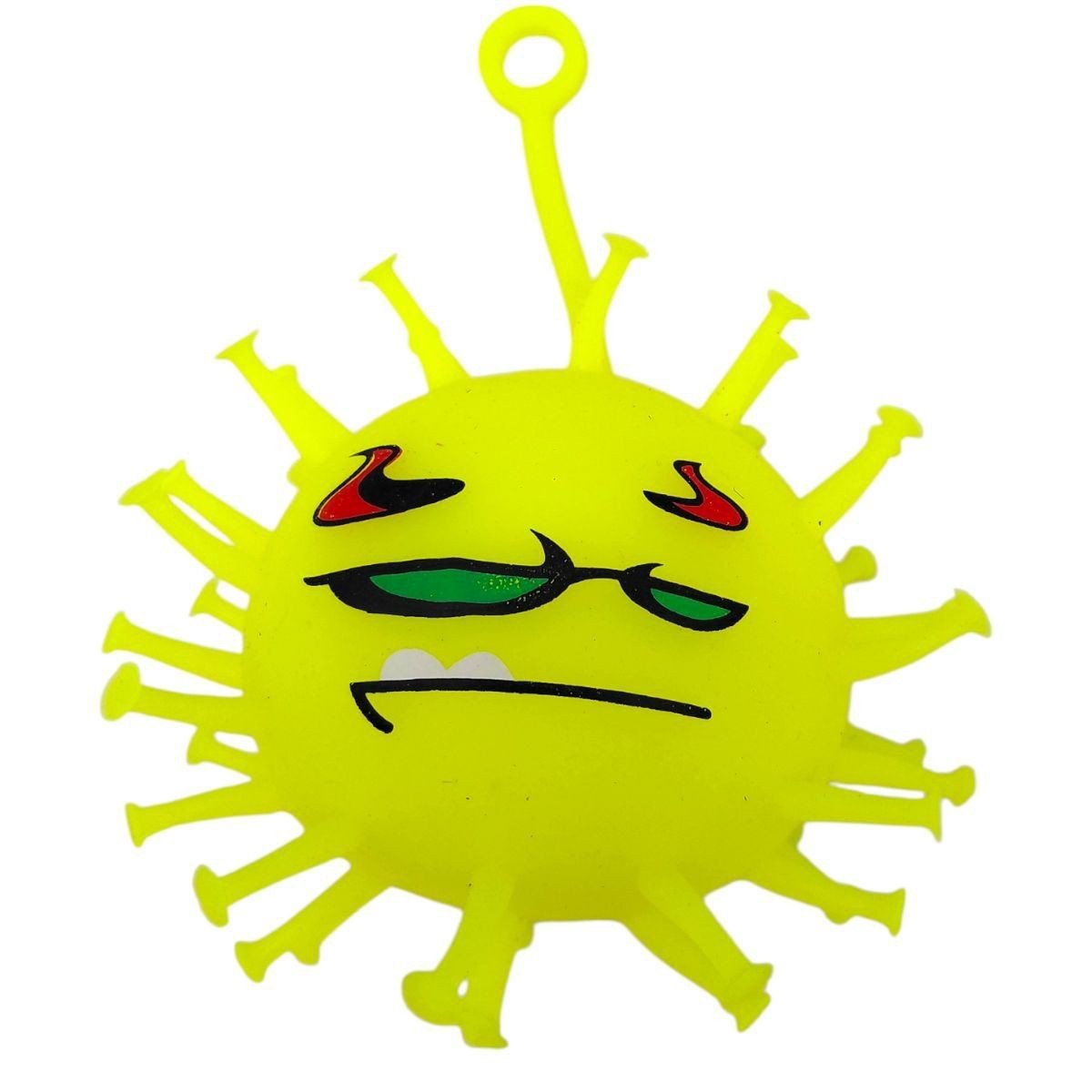 Кумедна світяшка у вигляді вірусу. Іграшка порожня всередині й наповнена повітрям по типу надувної кулі. Всередині іграшки також є пластикова світяшка, що активується при ударі об поверхню. Виконано з якісних та безпечних матеріалів. Для дітей старше 3-х років. Якщо іграшка трошки здута, можна накачати її за допомогою звичайного медичного шприца з голкою (на іграшці є спеціальний отвір).