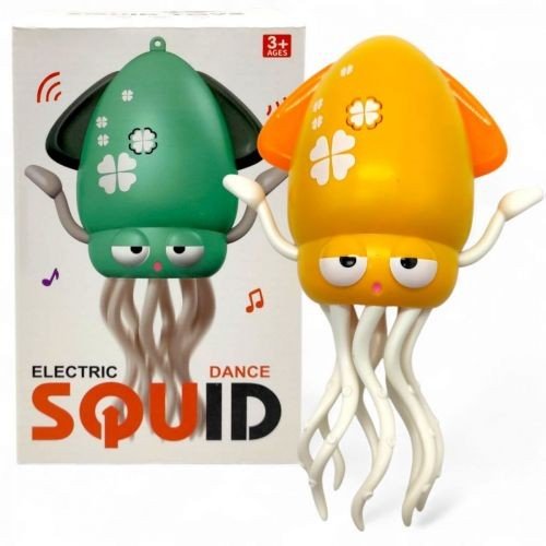 Іграшка вигляді миленького кальмара. Заряди іграшку, натисни на перемикач (має два режими) - і спостерігай, як кальмар ніби оживає починаючи танцювати та кататися завдяки колесам! З ним ніколи не буде нудно, особливо з його чудовою музикою та барвистим сяянням. В комплекті присутня USB зарядка, та вудочка на яку можна зловити кальмарчика. Виготовлений з якісних та міцних матеріалів. Рекомендований для діток від 4 років.