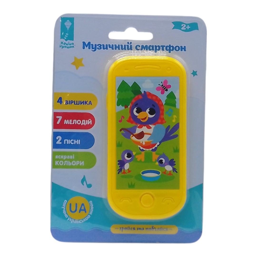 Музичний смартфон дарує можливість для навчання в невимушеній атмосфері гри. З ним весело, легко та цікаво вчитися. Натискай на кнопочку та слухай вірші, пісеньки та мелодії. Функції: