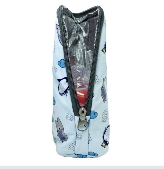 Термосумка має м’який текстильний зовнішній шар та внутрішній шар, що утримує температуру. Також має зручну ручку з карабіном, що дає можливістю закріпити сумку на будь-чому. Термосумка вміщує пляшечку діаметром до 9 см. Втрата тепла вмісту пляшечки в термосумці приблизно -20 градусів за годину. Тож ми рекомендуємо підігрівати вміст пляшечки до більш високої температури, перш ніж розмістити її в термосумці.