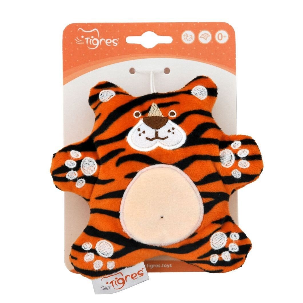 Мила іграшка у вигляді тигра розміром 14х14 см. Животик тигра набитий приємними на дотик кульками. Виконаний з якісних та безпечних матеріалів, підходить діткам будь-якого віку.