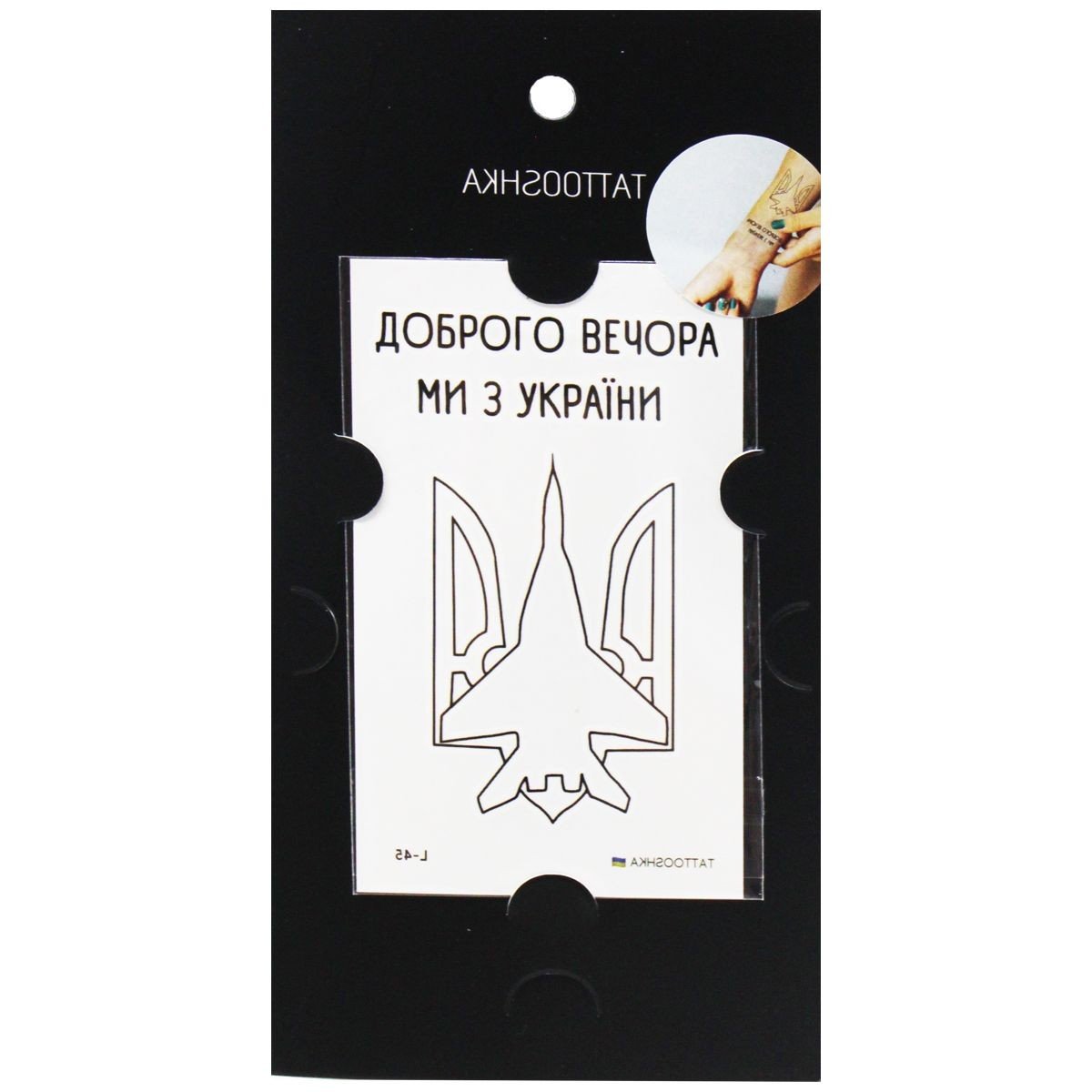 Набір татуювань-перебивок "Tattooshka". В упаковці дві патріотичні татуювання. Вирізати необхідне тату, наклеїти на руку або іншу частину тіла, змочити теплою водою, відклеїти. Розмір листа з татуюванням: 10,5х6 см.